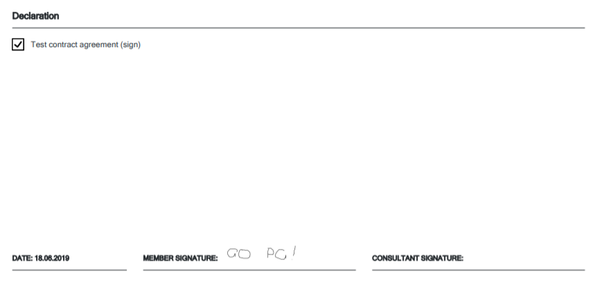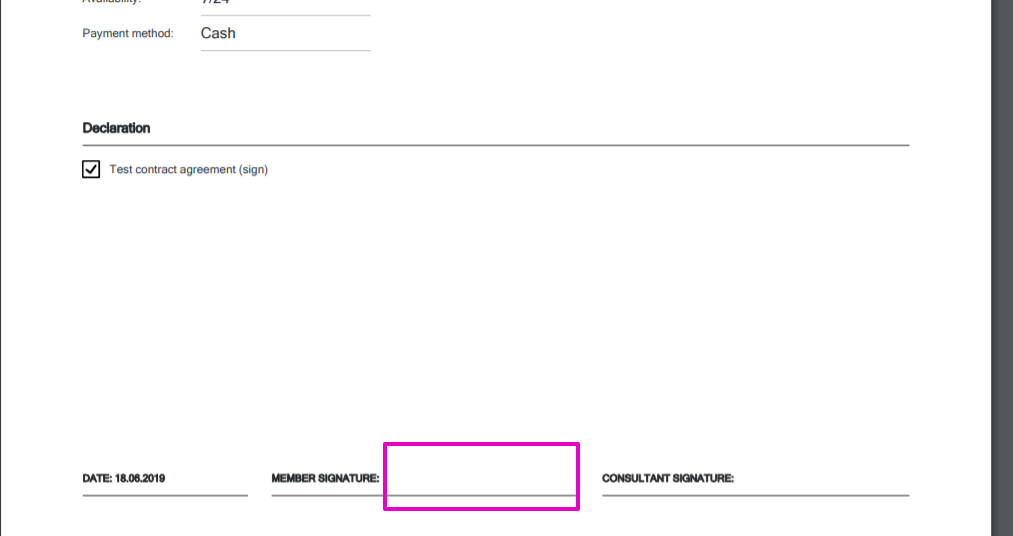 Our system supports automatic contract agreement document generation that allows storing the generated document in the PGM member profile as well as in the Documents section on the Client Portal.