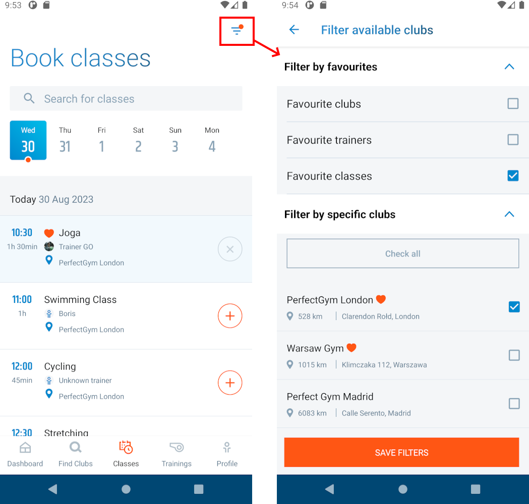 Since PGGO2 App version 1.13 we added possibility to mark clubs, classes, trainer and filter classes as your favorites. You can see which classes, clubs or trainers are your favourite. Moreover you can filter classes by your favourites.