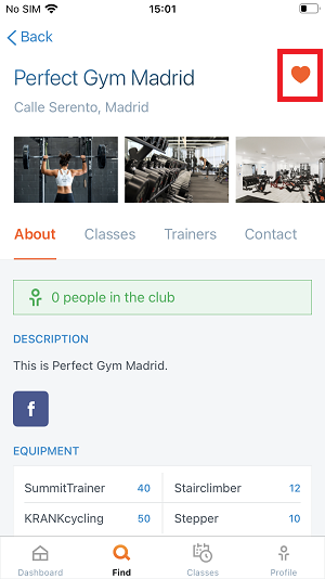 2. On club details tap on hearth icon in the top right corner. When it's filled club is added to favourites.