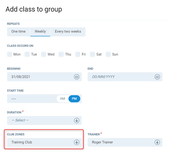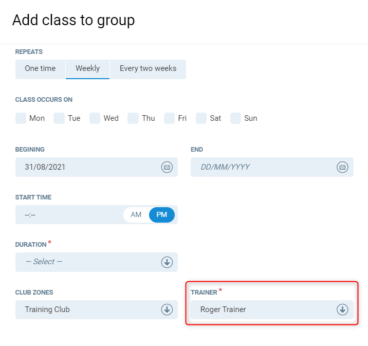 Trainer – Select the trainer who will be responsible for this group, this may or may not be the same trainer taking care of the class.