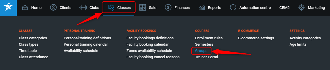 This article will take you though the steps of creating a group and the classes within it for club members to enroll into.