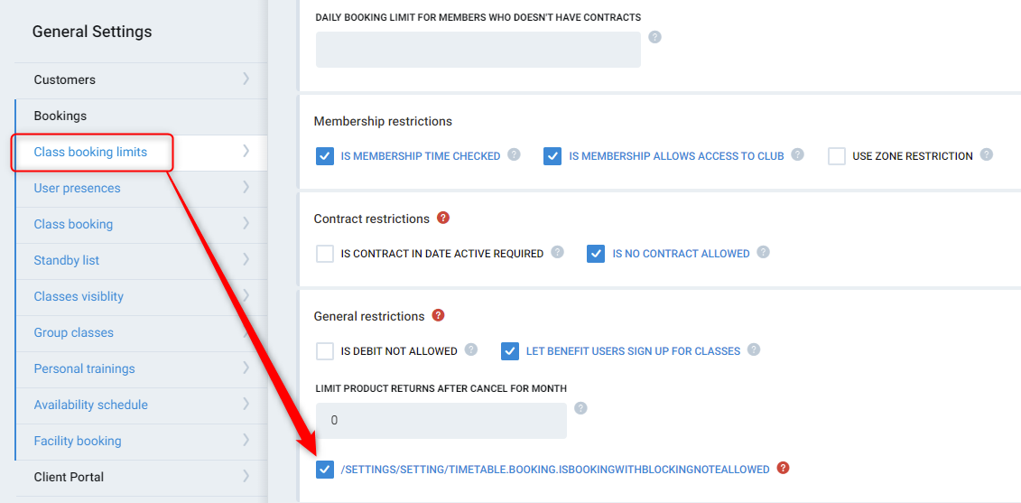 This will only relate to class timetable bookings. There is a separate setting for facility bookings.