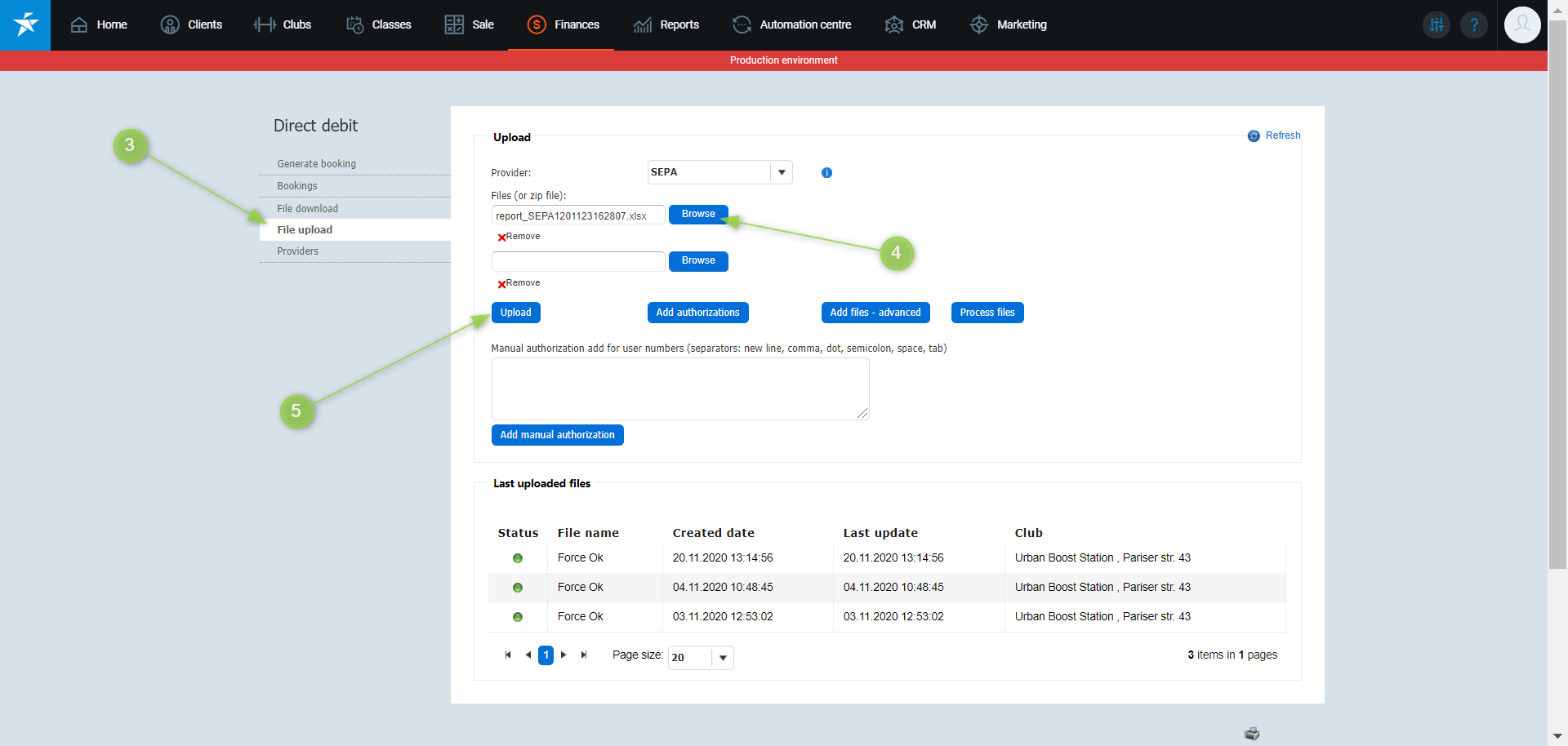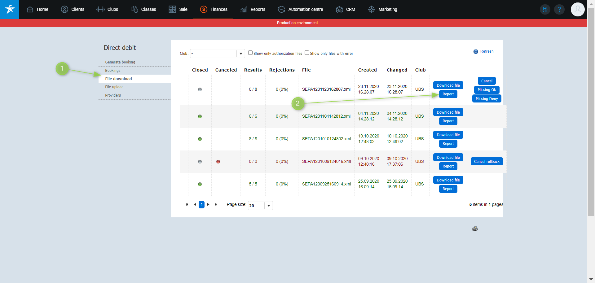 1. Go to the PGM -> Finances -> Direct debit