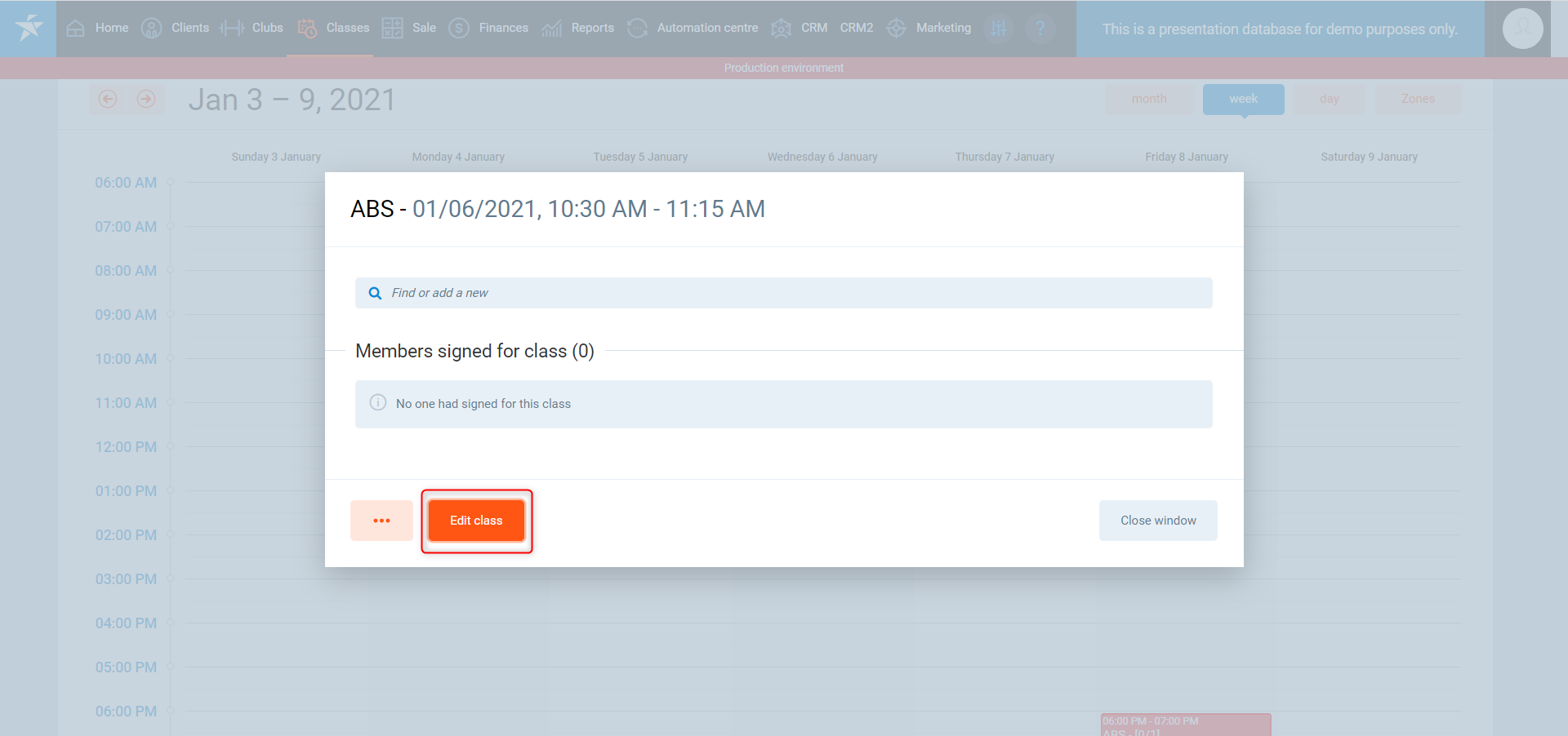 2b. Select classes in the Calendar and click on the Edit class button
