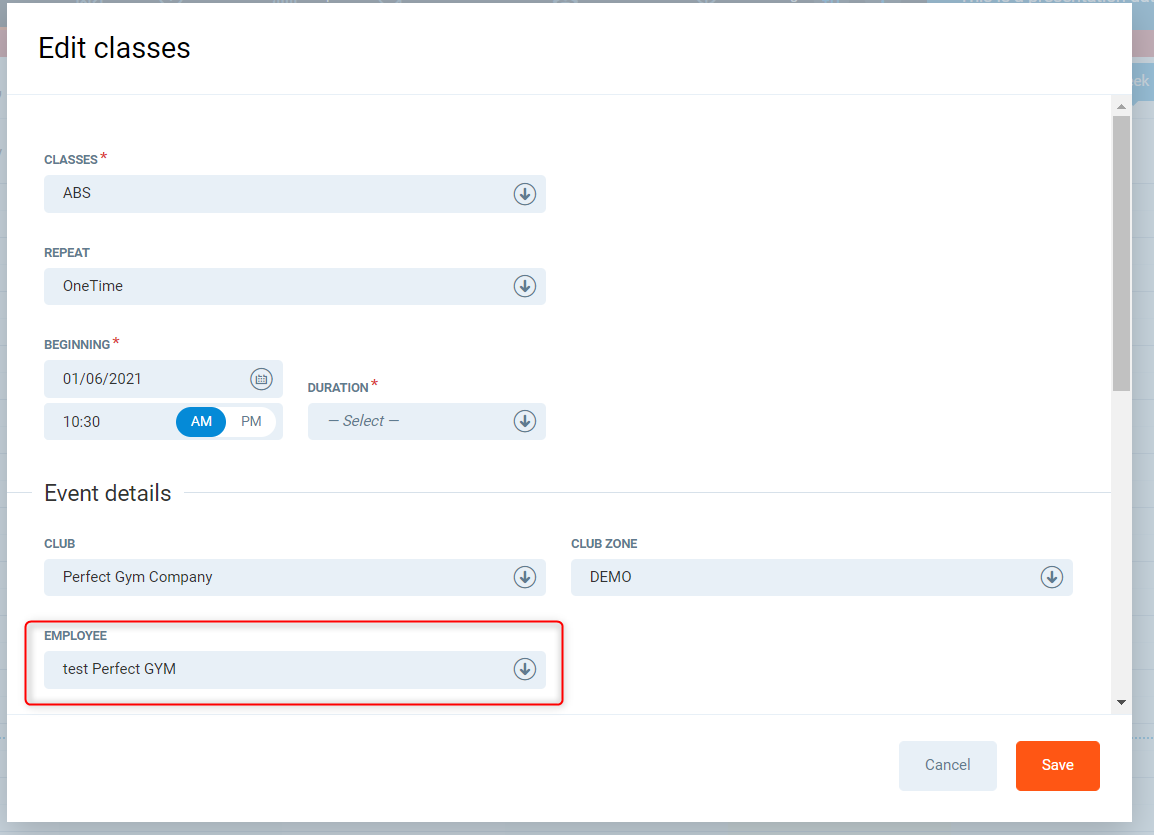 3b. In the Employee field, choose the Trainer.