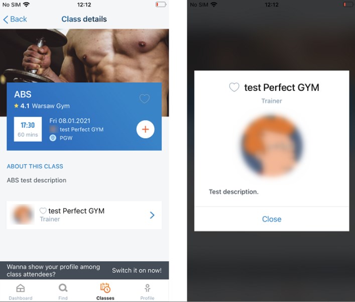 Here is how the added Trainer details are displayed in the Client Portal and Mobile app in the Class details and the Instructor Tab in Club details.