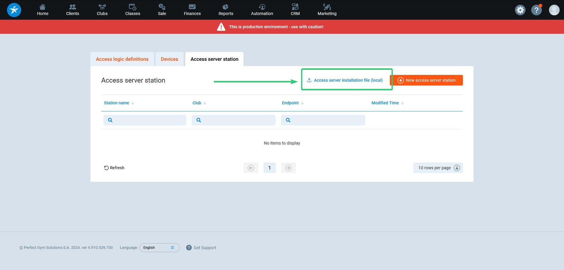 1. Download the installation file from the PGM -> Settings -> Access Logic -> Access server station.