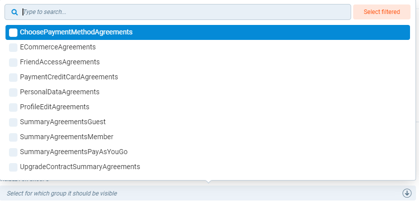- Clause visibility is managed the same way as other client agreements, i.e. it could be set up on any ClientPortal screens from groups - see the screen below!