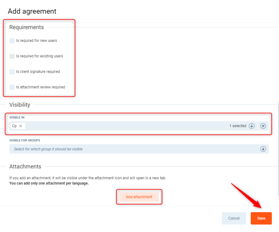 - If there are several user agreements on the CP screen, the Clause user agreement will be on top of the agreements list.