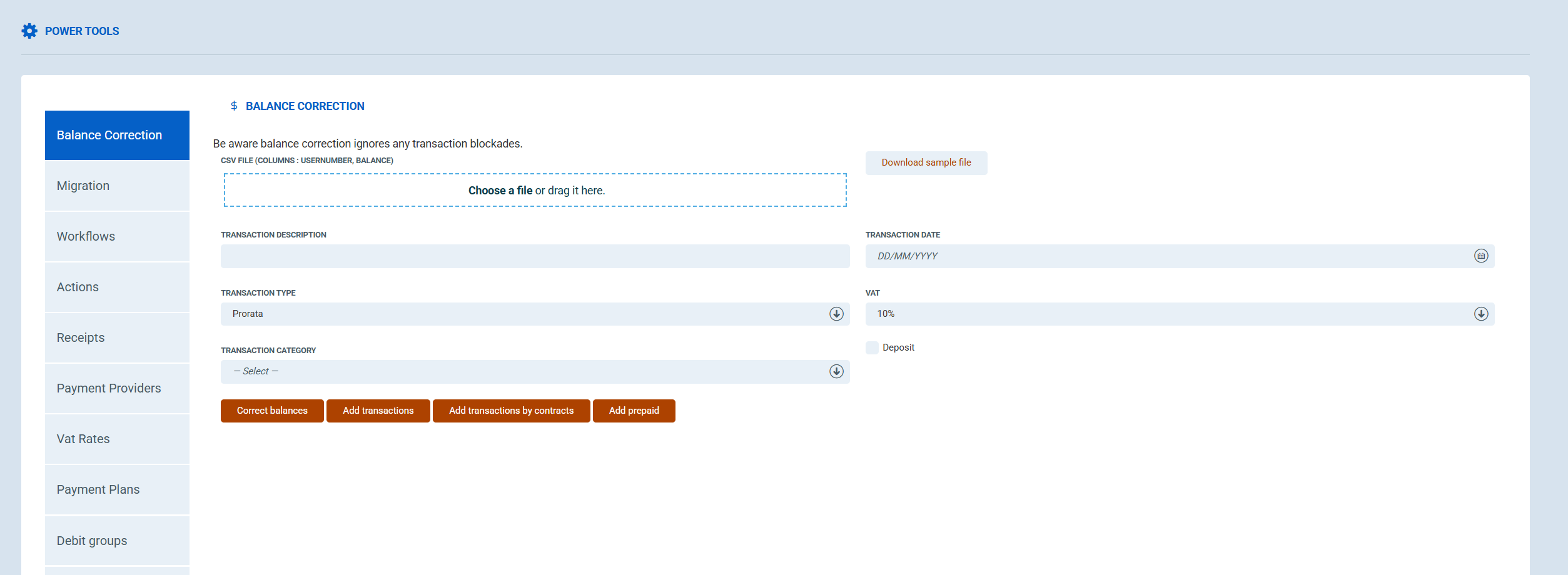 In this article, you will learn how to use the Balance Correction feature to adjust user balances, add transactions, and manage deposits in bulk using a CSV file.