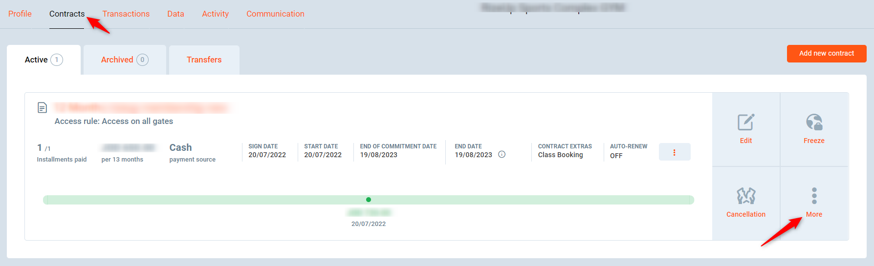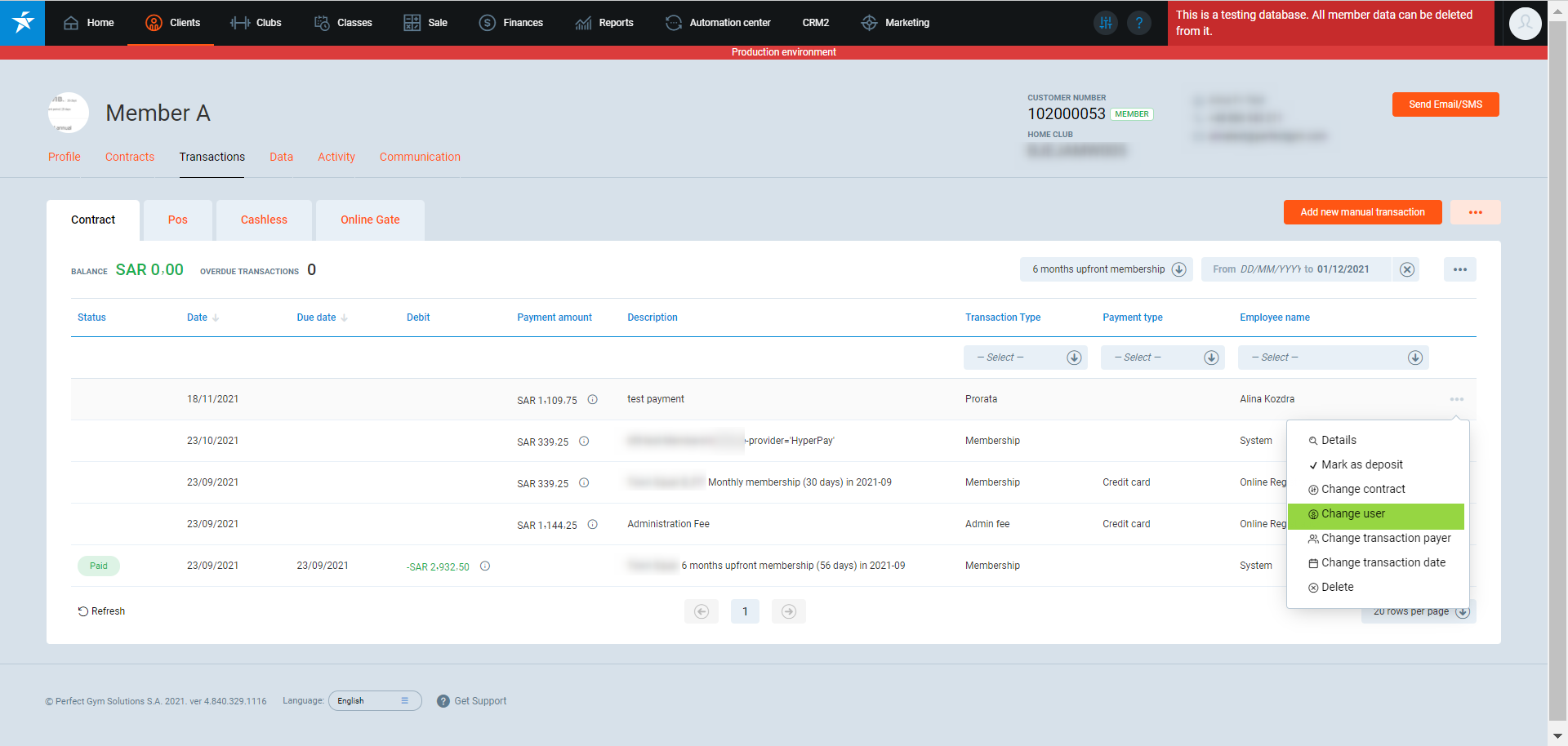If the member to whom you need to make a cession has a default payment method (paid at the reception) and the contract requires payment by credit card or direct debit, you should add the required payment source to their profile before making a cession to avoid errors during the cession or future payments.