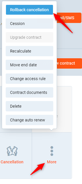 5. Choose "Rollback cancellation" (It will be only seen at the top of the list if the contract has an end date!)