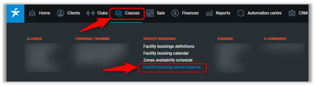 - Go to the PGM -> Classes-> Facility booking cancel reasons.