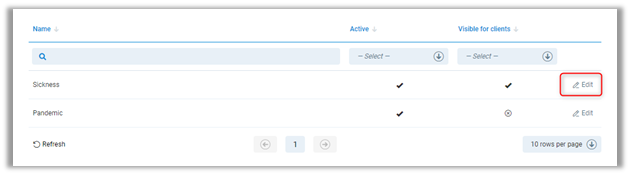 - To edit an existing cancel reason press Edit to the right of the cancel reason