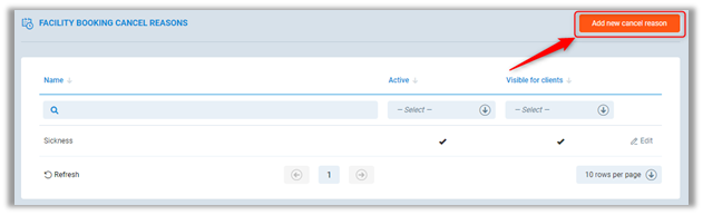 - Click on Add new cancel reason on the top right hand corner of the screen.