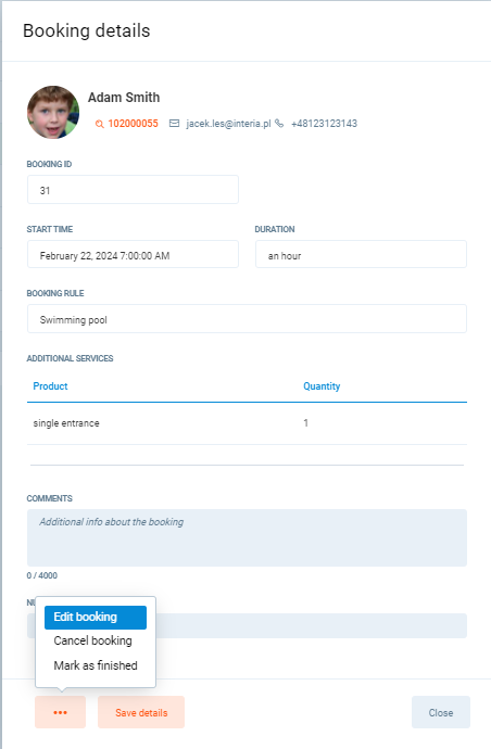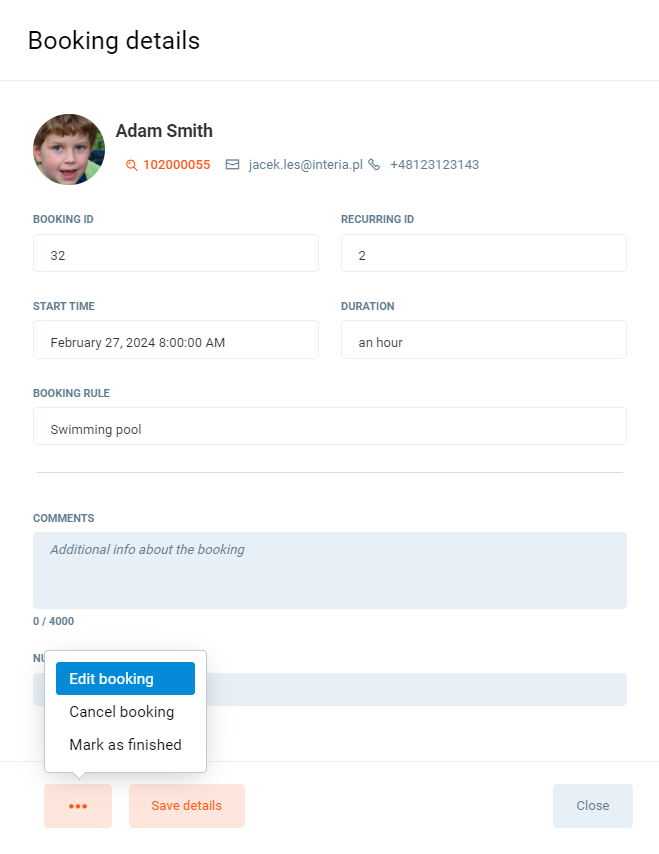2. Click on the three dots button and Edit booking. A new pop-up window will be displayed.