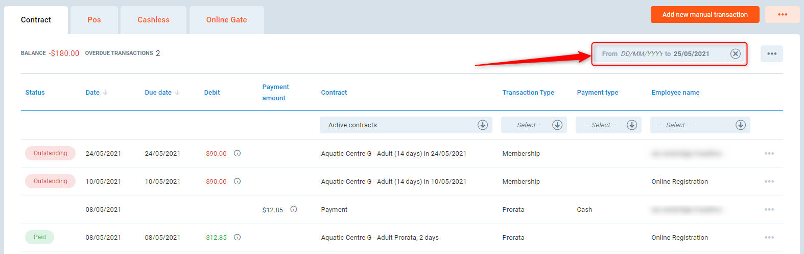 Check the date filter on contract transactions
