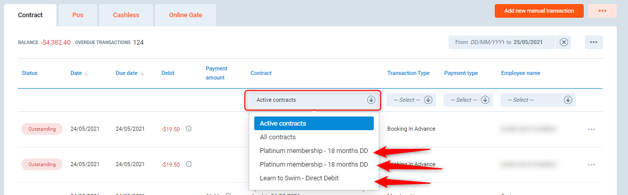 - Using the drop-down box in Contract, you can select the individual contracts and see the balance on the top left-hand corner.