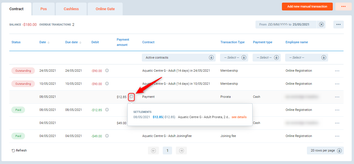 Check which transactions the payment is paying by selecting the information icon next to the payment.