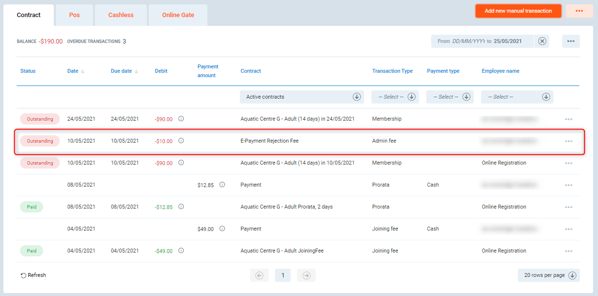 Club member has failed their recurring e-payment, depending on payment provider the reason the payment was rejected could appear in one or more of the following:
