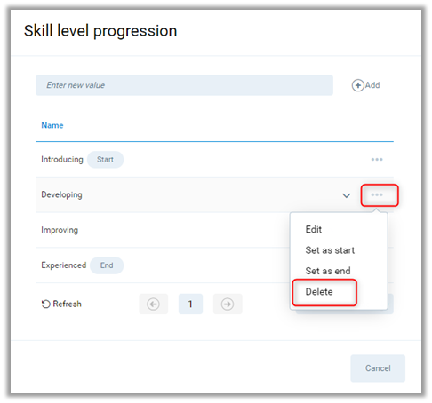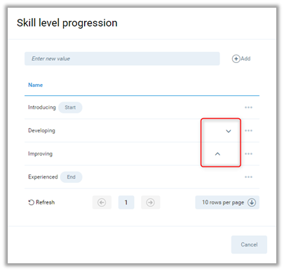 Any changes done to skill progression while it is being used will affect all current students in the courses as they may lose their levels.