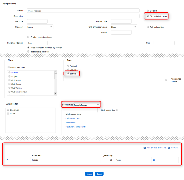How to set up Freeze in form of Product Bundle?