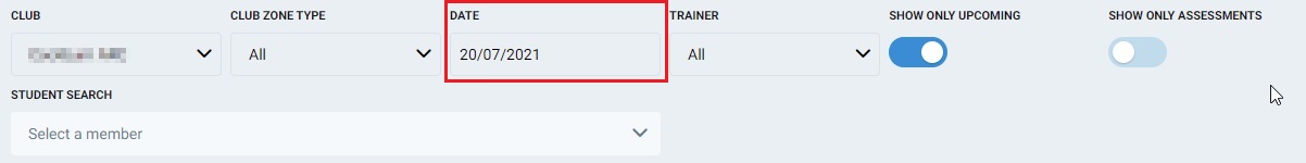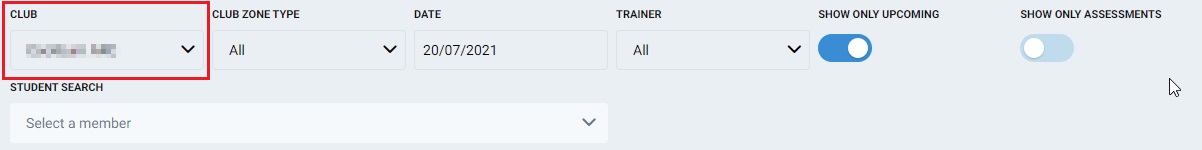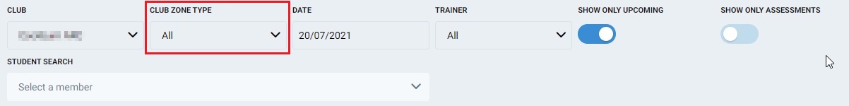 Club Zone Type – Select which club zone type should be viewed on screen. This will show only classes in that club zone type.