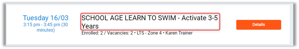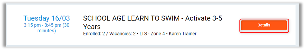 Details – More information about who is attending the class.
