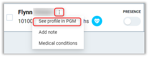 See profile in PGM – Opens a new tab in the browser to display the member profile.