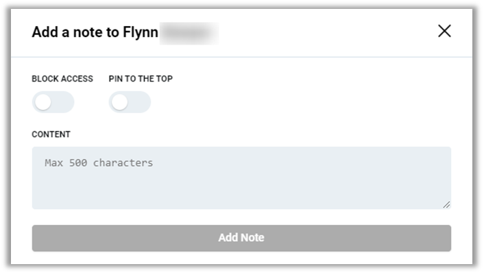 - Add Note – Save button to add a note to the club member profile.