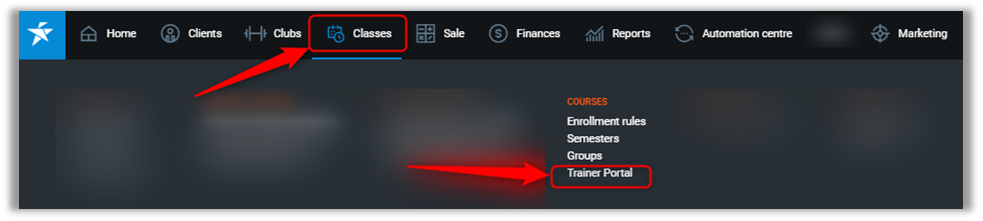 To access the Trainer portal, go to PGM->Classes->Trainer Portal.