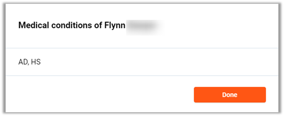 Medical Conditions – This will open a pop up box displaying what medical conditions are saved against the member profile.