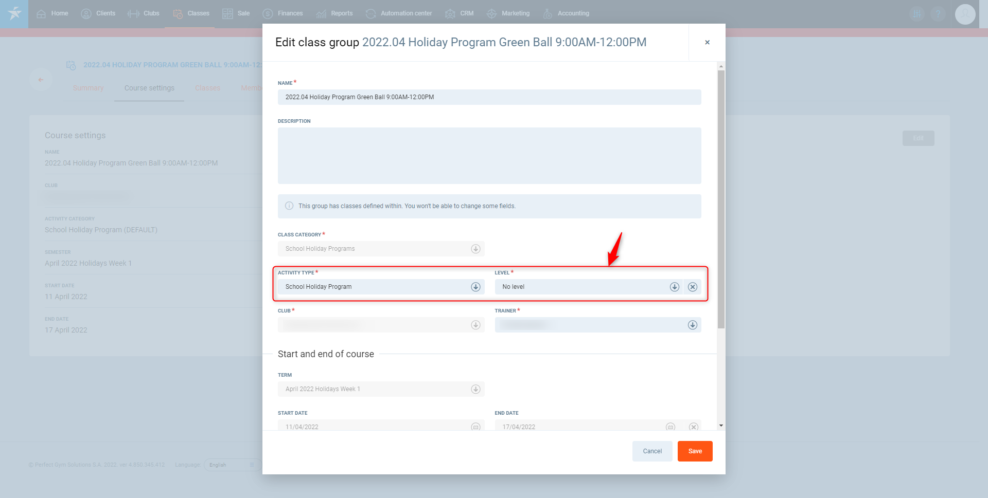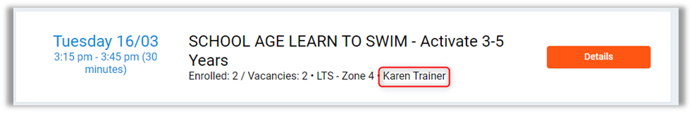 Trainer – Select the classes the trainer will be in. The default view is the employee currently logged in.