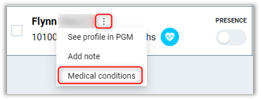 Note: This requires additional setup, please follow the guides located here on how to set up custom attributes for medical conditions.