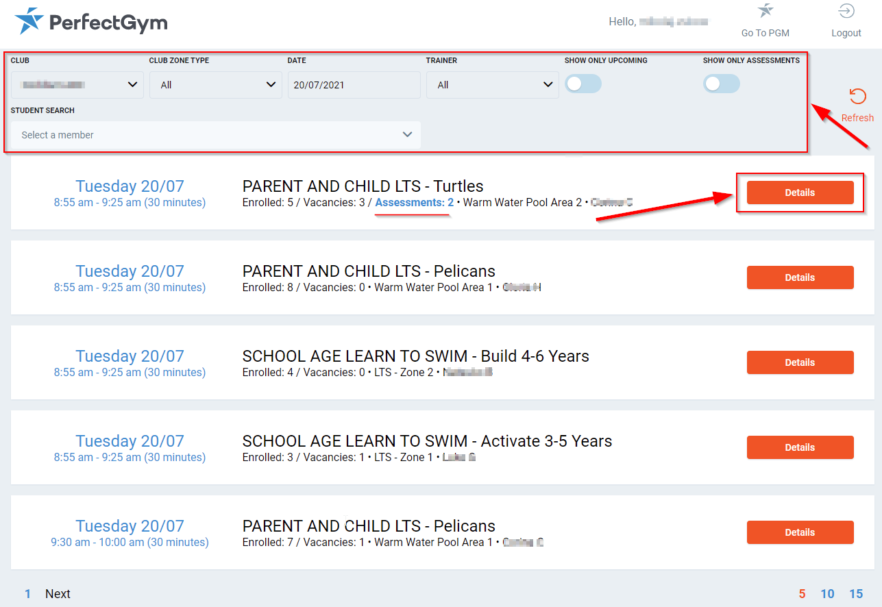 Assessment module within PerfectGym is used for Skills and assessing children within the Course module and promoting them to a new class. This will allow the Trainer to be able to ‘book’ or ‘denote’ a group member to be assessed on a specific class / date.