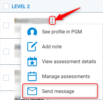 1. Select Send message option, use either the tick box next to their name to select the student or next to the level name to select all students in that level.