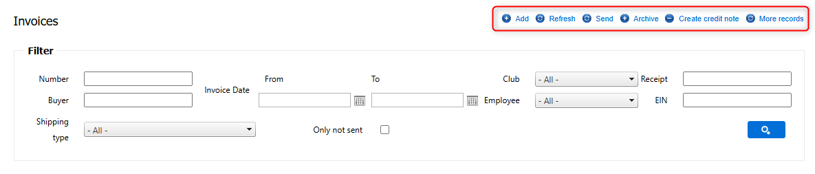 Settings: On the Invoice List, check the Only not sent filter box and click Search.