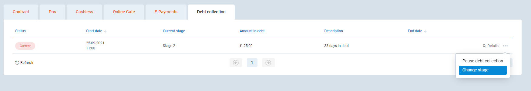 - The first step is to define the debt collection stages. The number of stages, their names, and the meaning of each stage is up to your business needs. In PGM you can use a predefined up to 4-stages debt collection process.*