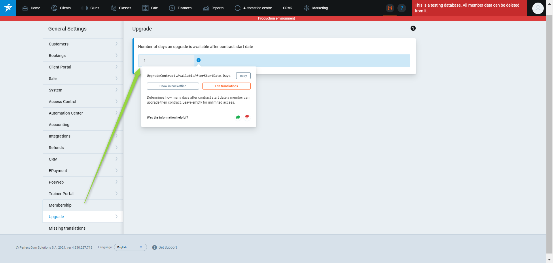 The system allows you to set a limit that determines how many days from the start of the current Contract, it can be upgraded by a member. To use this option, go to the PGM -> System Settings. From the General Settings menu on the left, select Upgrade. In the Number of days an upgrade is available after contract start date, enter the number of days.