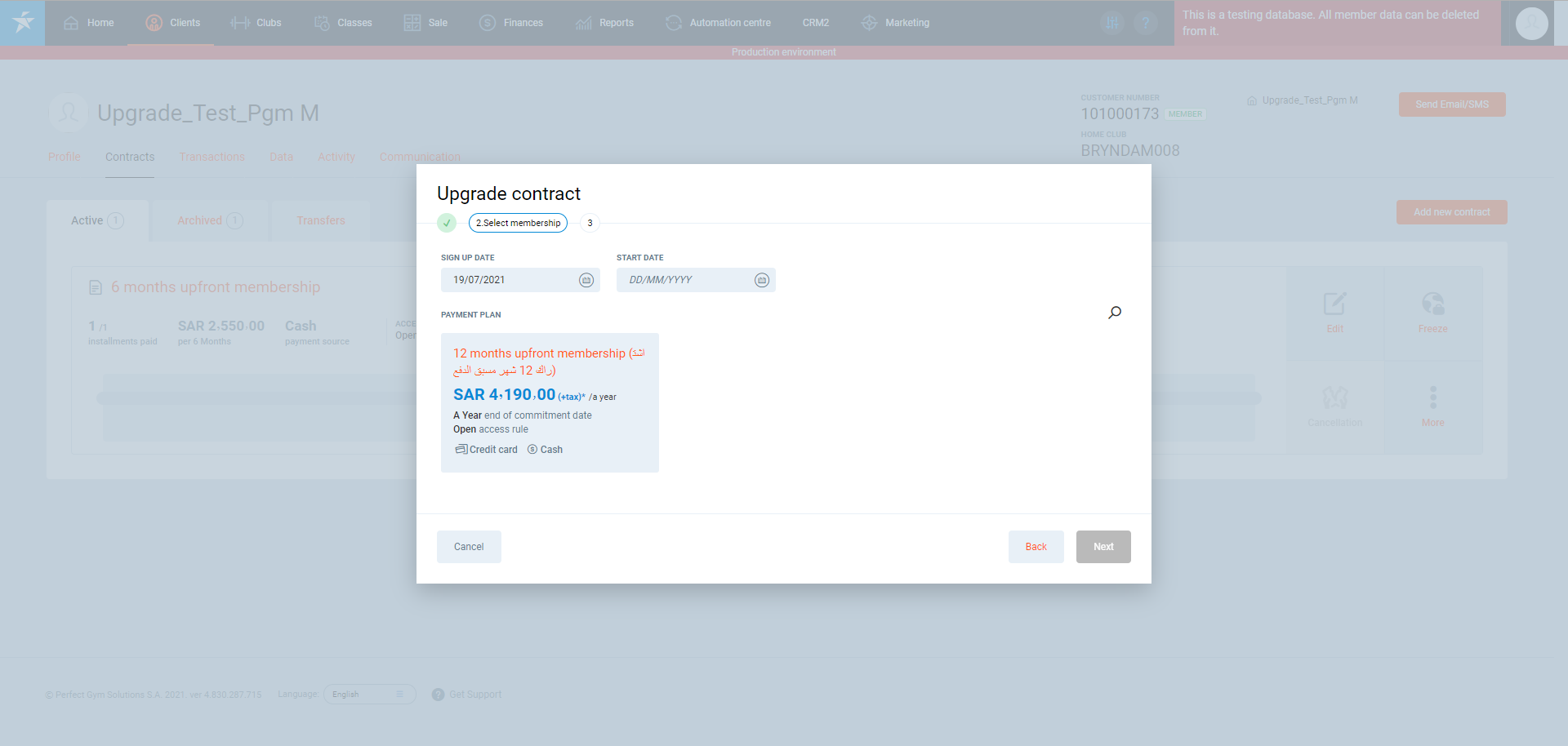In this article, you will learn how to upgrade your club member's Contract. An upgrade means a change of a member's Contract from a lower plan to the higher. I.e. if a member has a 3-month Contract, they can upgrade it only to the higher option, which means 6-month or 12-month Contract. Contract Upgrade assumes that it is not possible for the member to go from a 3-month Contract into 1-month. Contract upgrade can be done via PGM and Client Portal.