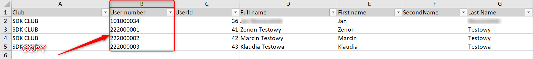 - Copy Column B in which User Number can be found.