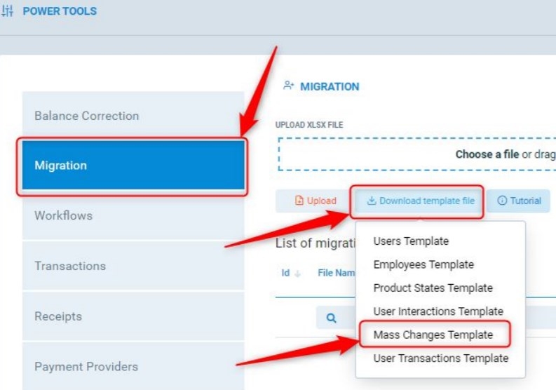 2. Select Migration -> Download Template File -> Mass Changes Template and download the file.