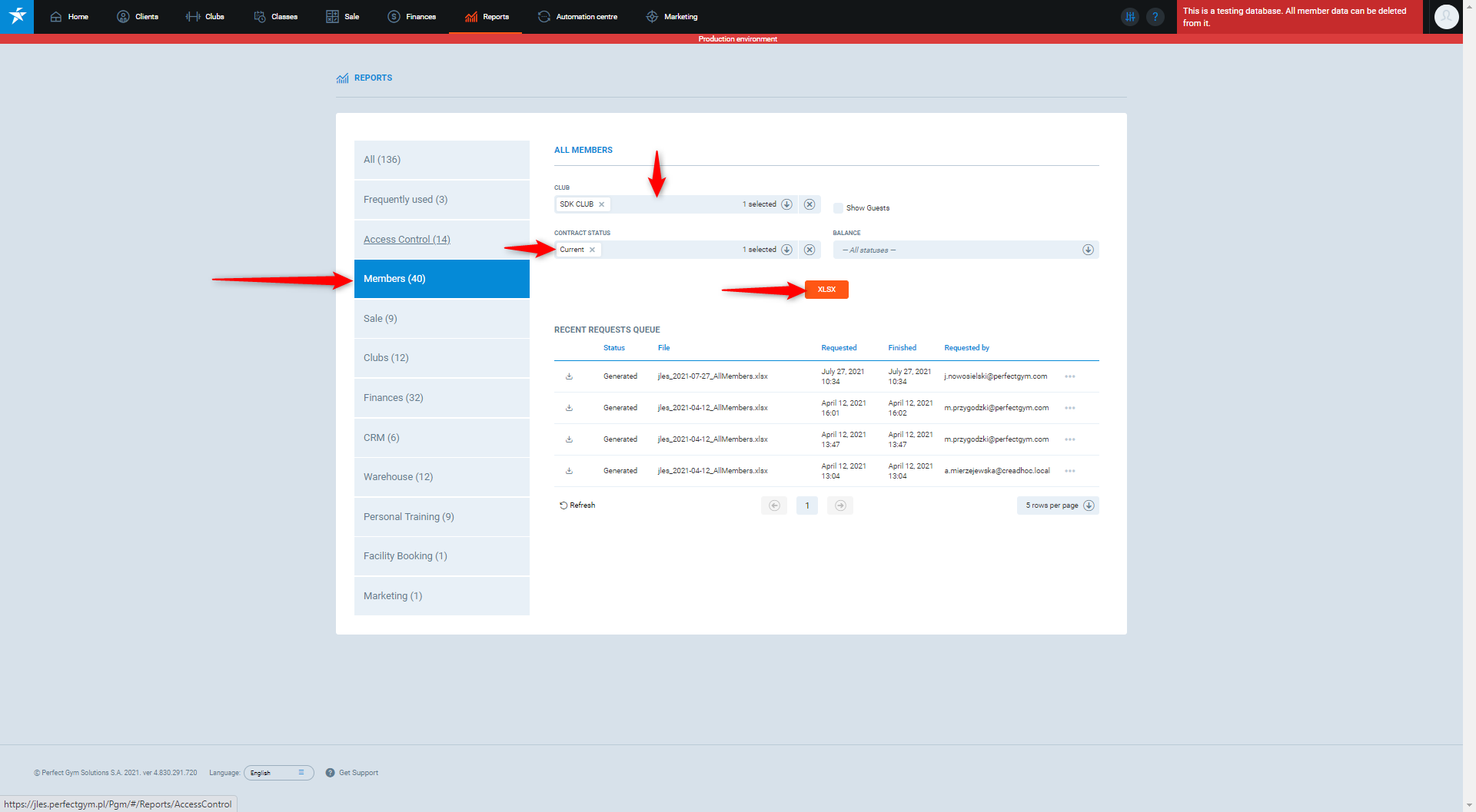 - Press XLSX to generate and download the report.