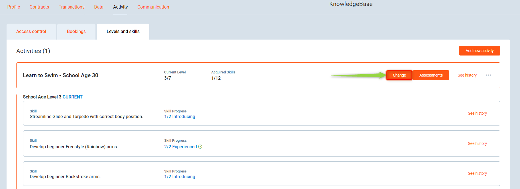 To use Levels and Skills, first make sure you have configured Skills for member's Activity levels. Check this article to learn how to do it. Next, configure Skill progression. You will find instructions in this article.