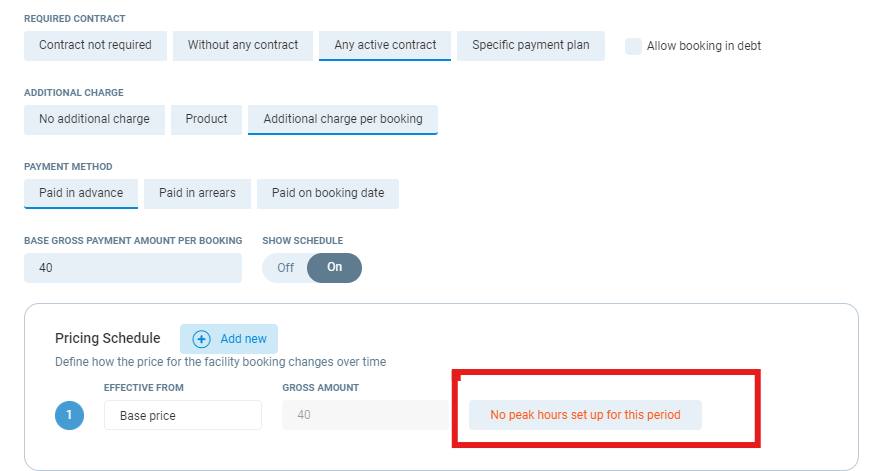 This guide is for any facility booking definitions where additional pricing is used. This price rise will also change existing bookings pricing.