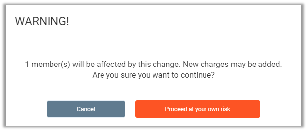 A new warning screen will be displayed showing how many members will be affected by this change, to proceed press "Proceed at your own risk"