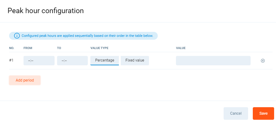 To enable this feature, please configure additional setup and click on No peak hours set up for this period