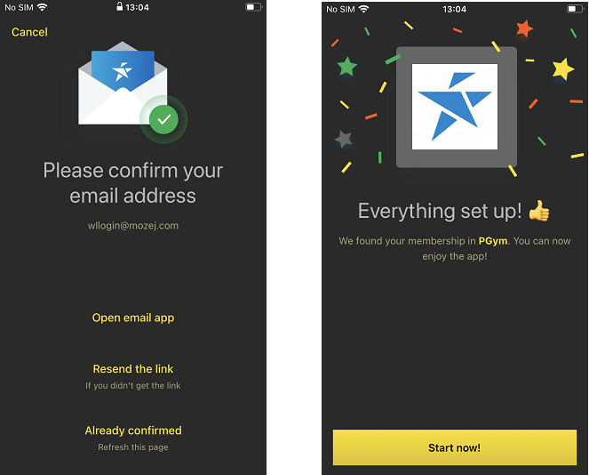 At this step, the app verifies if such an e-mail exists in the club. If not, an error message will be displayed.