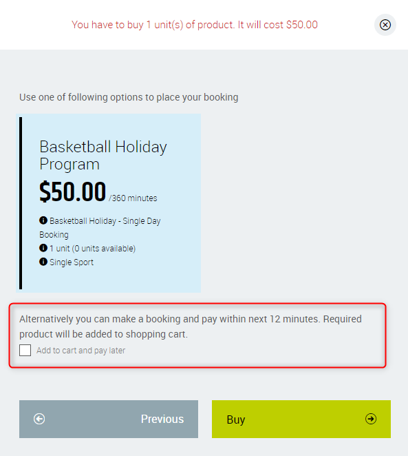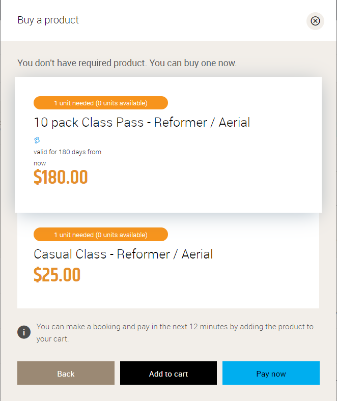 If the club member presses 'Add to cart' this will book them into the class however open a new window to remind them to pay for booking within X period of time.