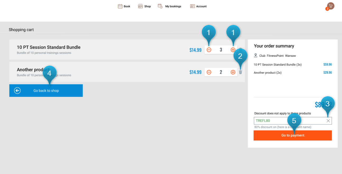 Shopping Cart, it is a functionality, which makes product purchases more convenient and intuitive for club members on the Client Portal 2.